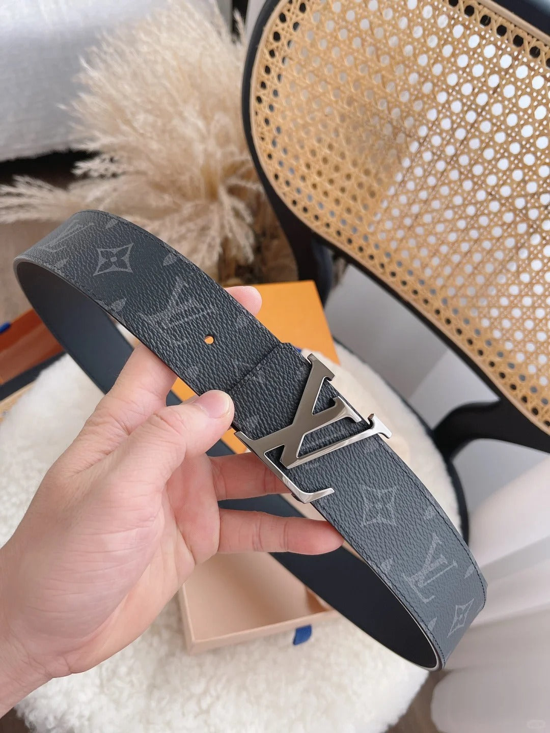 2025 Classic black monogram silver buckle belt